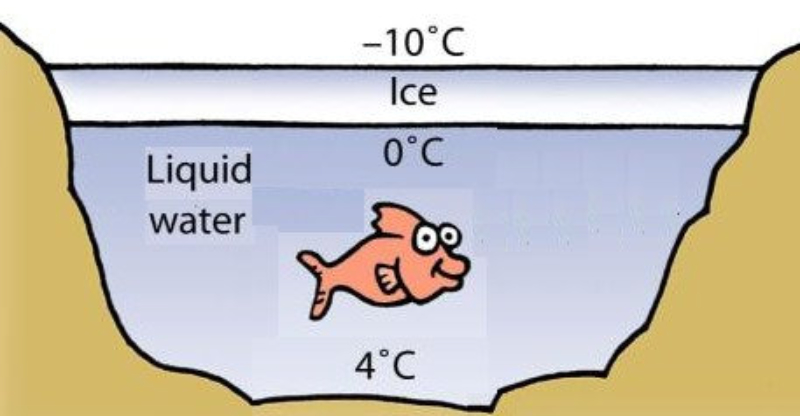 alcanza su mayor densidad a los 4ºC. Así, el hielo es menos