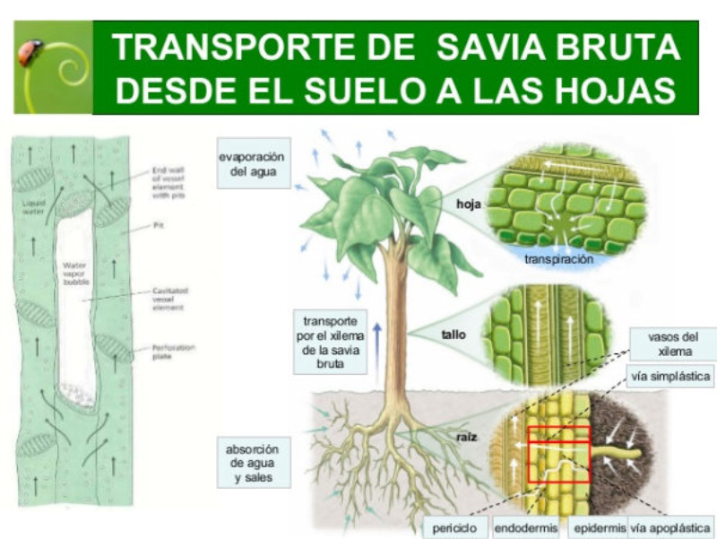 savia bruta. La entrada de estos nutrientes se realiza por los
