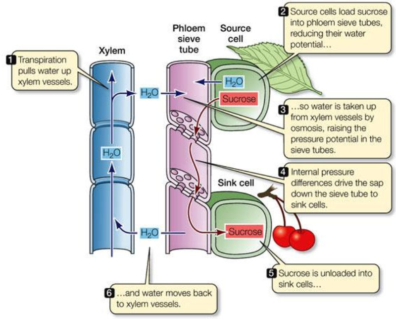 Una vez en el xilema, el agua y las sales deben ascender por los