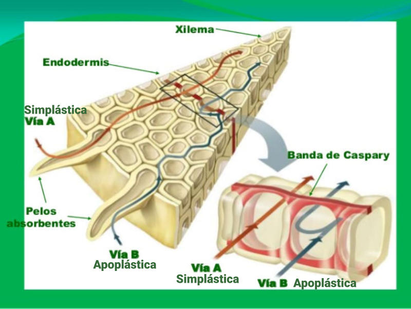 Una vez han entrado el agua y las sales en la rizodermis, debe