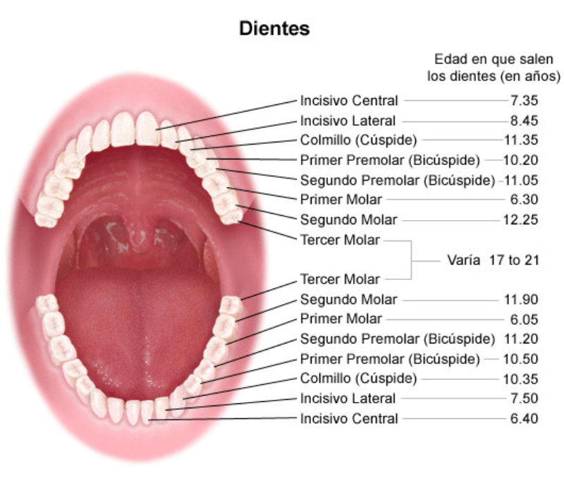 los 6 meses y dura hasta los 6 años. Consta de 20 dientes