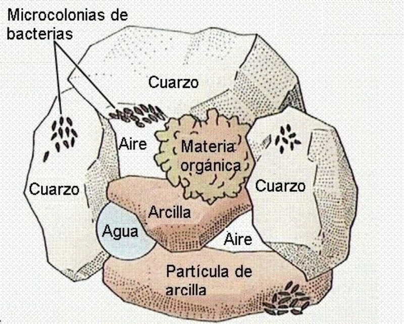 Aire: ocupa los huecos entre materiales sólidos. Un