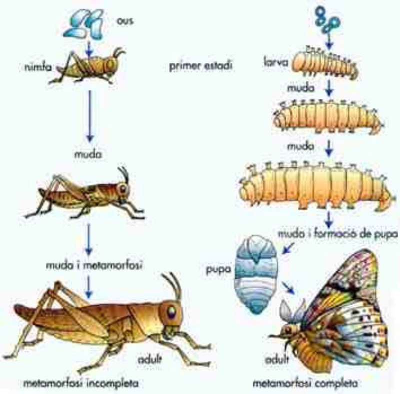 metamorfosis. Se da en muchos insectos y anfibios.