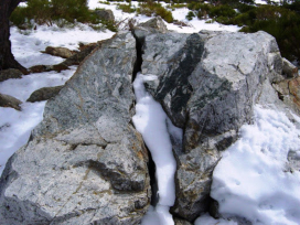 se ha introducido en las grietas de las rocas, cuando se