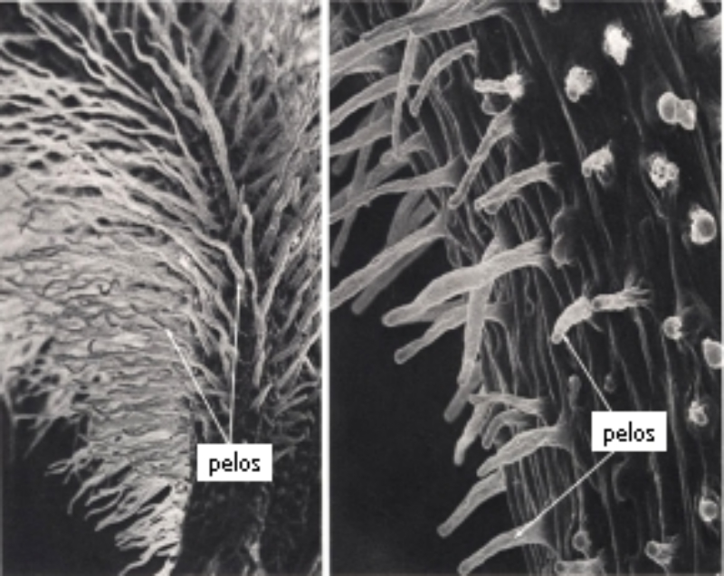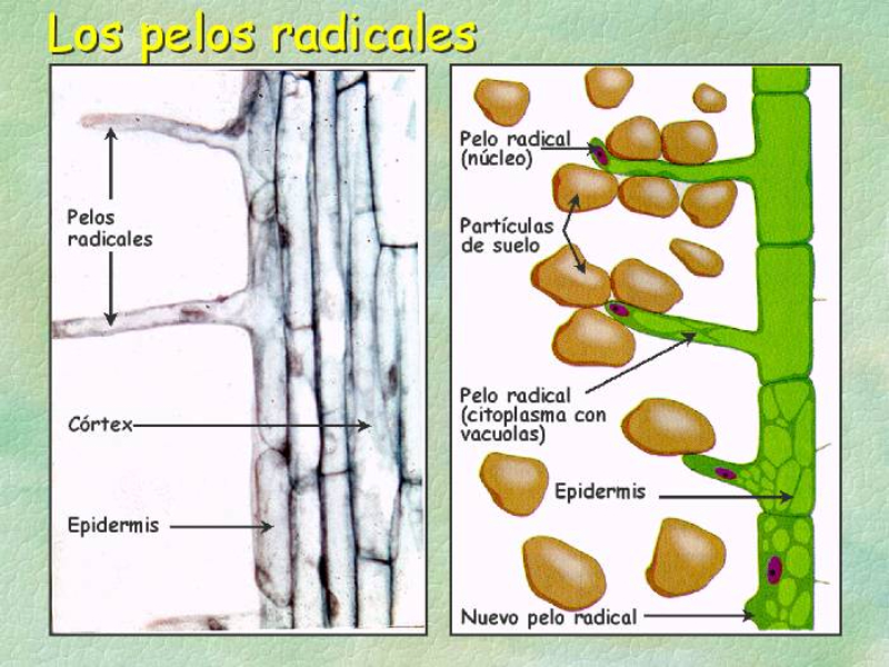 están los pelos absorbentes o radicales.