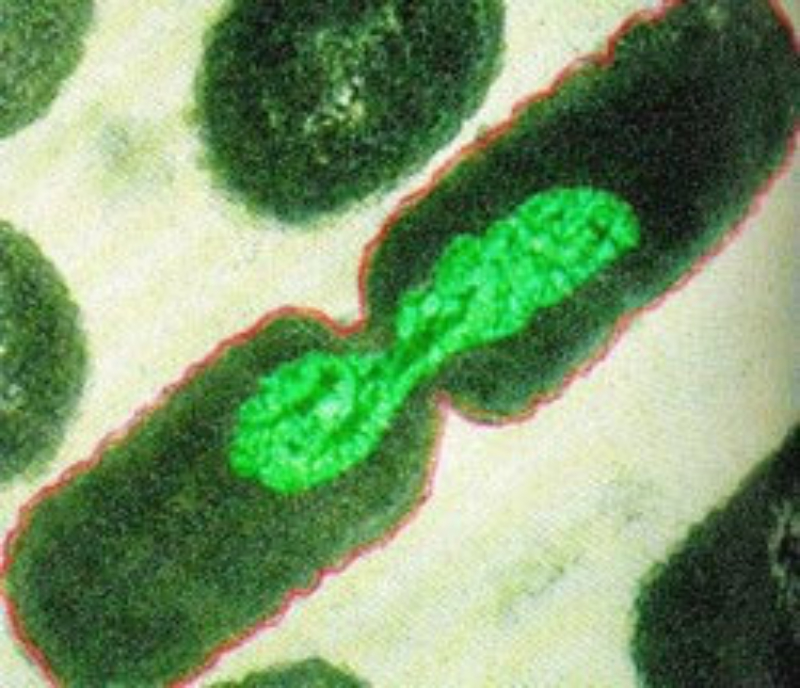 El núcleo de la célula (o el ADN en bacterias) se divide